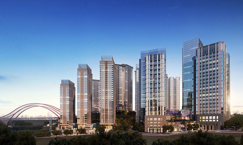 星耀天地項目位于重慶市江北區(qū)北濱二路,包括2棟高層辦公樓,3棟高層住宅及7棟多層辦公樓及商業(yè)和車庫,總建筑面積約230000㎡,為現澆框架剪力墻結構,最高建筑高度為99.4米。